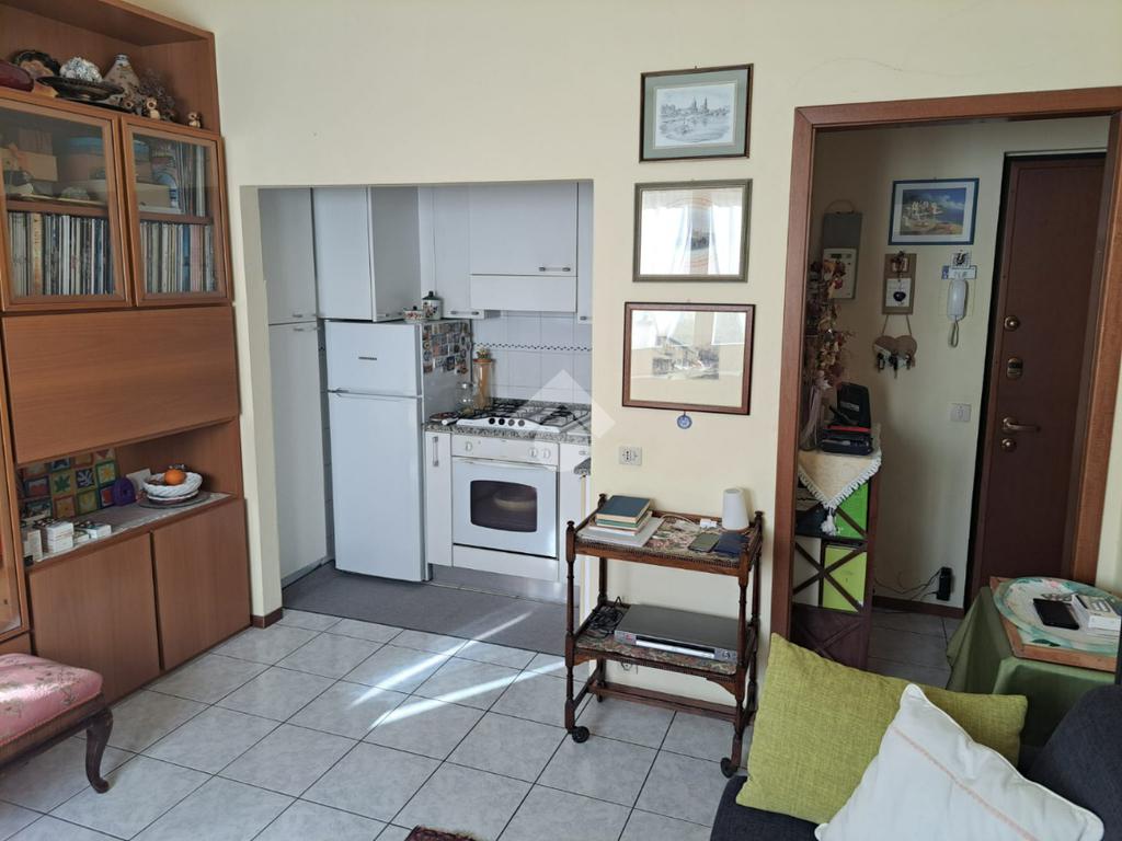 Via Ferrini: In Palazzina di recente ristrutturazione, appartamento al piano rialzato in buono stato composto da ingresso, soggiorno con cucinotto, camera da letto, bagno con doccia. Cantina e posto auto condominiale. Libera al rogito.
